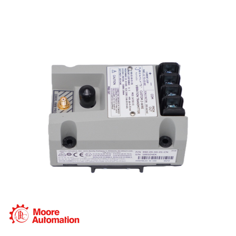 O 990-04-XX-02-05 MOD:167577-05 O transmissor de vibração é um dispositivo de dois fios, alimentado por loop, que aceita sinais das sondas de proximidade 3300 NSv da Bently Nevada e um cabo de extensão compatível (disponível em opções de comprimento de sistema de 5 m e 7 m). O transmissor condiciona o sinal em unidades de engenharia de amplitude de vibração pico a pico apropriadas e fornece esse valor como um sinal proporcional de 4 a 20 mA, padrão da indústria, como entrada para o sistema de controle onde ocorre o alarme de proteção da máquina.